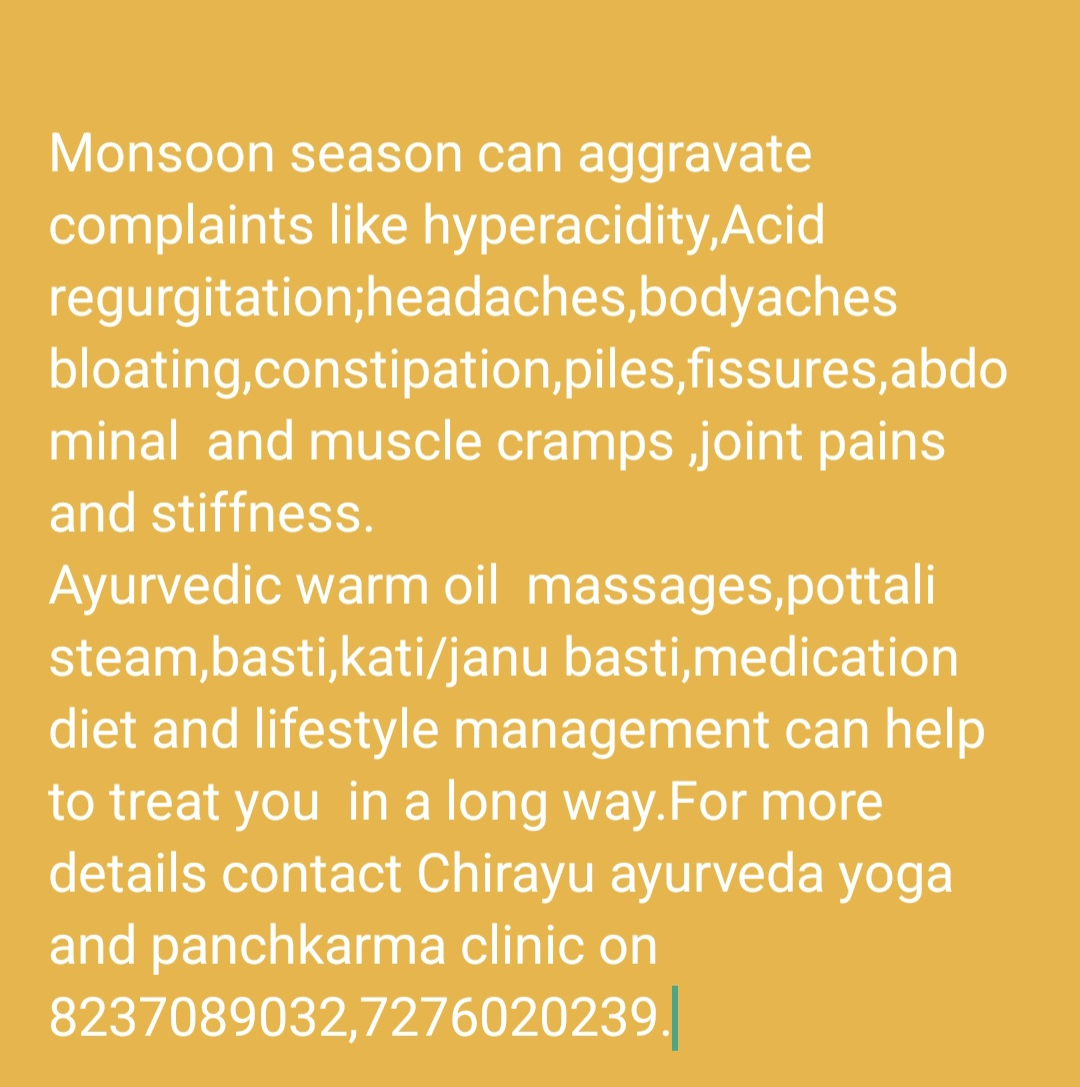 Diet, lifestyle changes and panchkarma to Detox yourself can go a long way to reduce the vataj pittaj complaints especially aggravated during monsoon season.